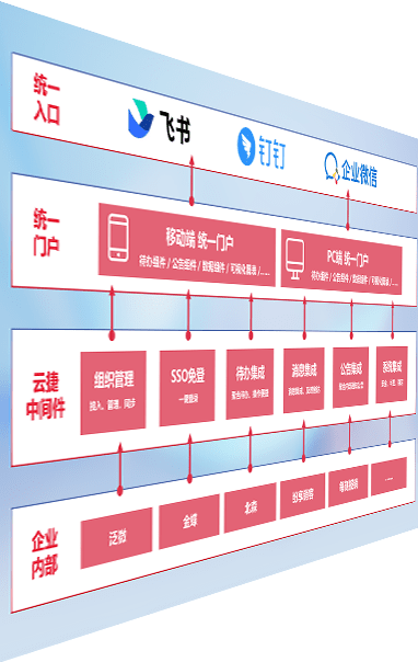 对协作平台提供支持服务,,,支持企业应用与协作平台对接,,,包含组织同步、、、、消息集成、、、、待办集成等。。。。支持目前主流的协作平台:钉钉、、、企微和飞书。。。。