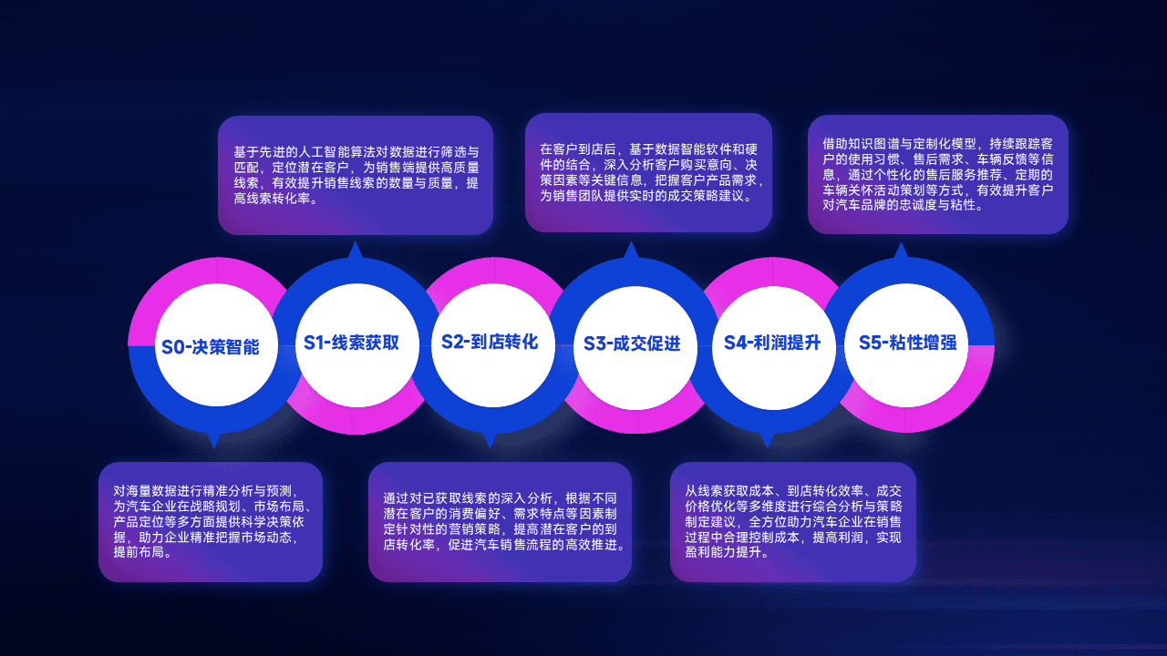 通过拓宽潜在客户来源、、、、优化线索分配并提高到店转化率,,,,以增强销售效率。。同时,,,利用线索数据不断优化分析模型,,,,有效提升转化率,,,扩大营销影响力。。